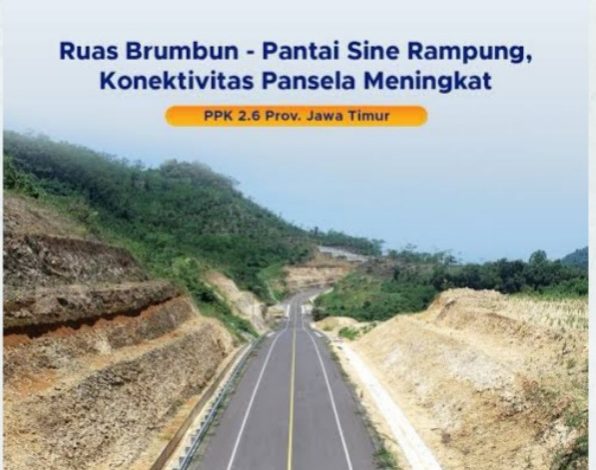 Pembangunan Jalan Lintas Pantai Selatan (Pansela) Lot 1B ruas Jalan Brumbun–Pantai Sine di Kabupaten Tulungagung, Jawa Timur, resmi tuntas.