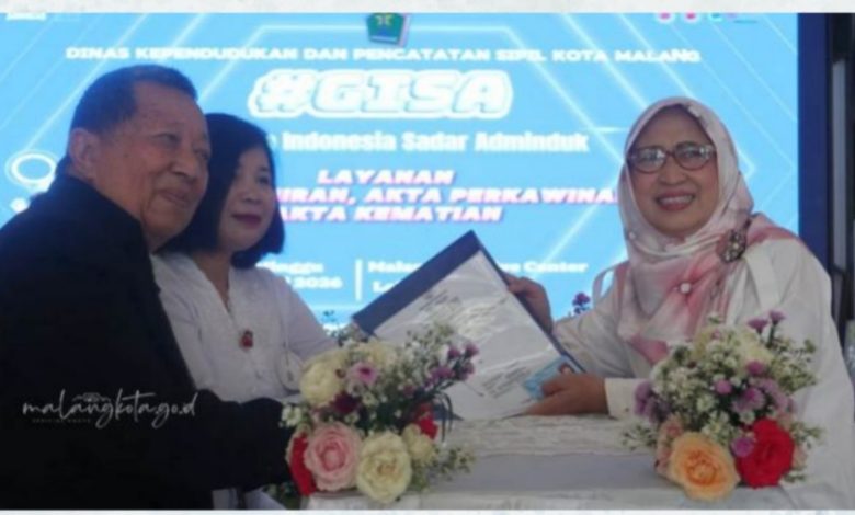 Dinas Kependudukan dan Pencatatan Sipil (Dispendukcapil) Kota Malang secara resmi meluncurkan inovasi PENINGSET (Pelayanan Pencatatan Perkawinan Gerak Sat Set) di hari kedua kegiatan Gerakan Indonesia Sadar Administasi Kependudukan (GISA) di Malang Creative Center (MCC) Kota Malang, Minggu (19/4/2026).